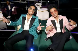 Mars is accompanied by his band, the Hooligans, who play a variety of instruments, such as electric guitar, bass, piano, keyboards, drums, and horns, and also serve as backup singers and disco dancers (그는 일렉트릭 기타, 베이스, 피아노, 키보드, 드럼, 호른 등 다양한 악기를 연주하고 백업 가수 및 디스코 댄서로도 활동하는 그의 밴드 the Hooligans와 동행한다).